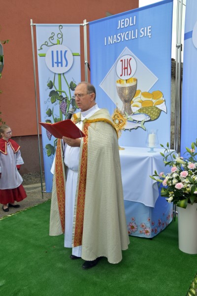Uroczystość Bożego Ciała: w tym roku procesja odbyła się do czterech nowych, pięknie przygotowanych ołtarzy ustawionych wzdłuż ul. Powstańców Śl. Procesję przy pięknej pogodzie razem z księdzem proboszczem prowadził diakon Rudolf Wilczek z Pietrowic Wielkich.