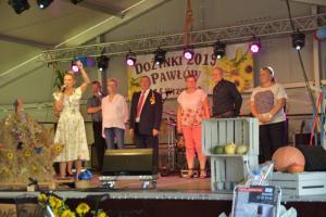 Uroczystość Dziękczynienia za tegoroczne żniwa świętowaliśmy przy pięknej pogodzie. Msza św. o godz. 12.00, a po niej wyruszył korowód dożynkowy z placu przy probostwie. Jak zwykle był bardzo kolorowy. Wieś była bardzo pięknie udekorowana. Po Mszy św. odbył się festyn dożynkowy, na którym wystąpiły zespoły: BIESIADA Z HUMOREM i WEHIKUŁ CZASU – HITY LAT 80. I 90. Charytatywna Loteria Dożynkowa z cennymi nagrodami, zuzka, bufet, napoje i na koniec zabawa taneczna przy akompaniamencie zespołu ORION do godz. 1.00 – to wszystko zgromadziło setki gości. Starostami dożynek byli małżonkowie Jolanta i Piotr Opolony. Dożynki zostały przygotowane przez Sołtysa i Radę Sołecką przy współpracy z Parafią oraz LKS Pawłów, OSP Pawłów i jak zawsze przy ogromnym zaangażowaniu wiernych, zwłaszcza jeżeli chodzi o przyniesione nagrody na loterię dożynkową, z której dochód w całości przeznaczono na dofinansowanie zakupu opału do kościoła.