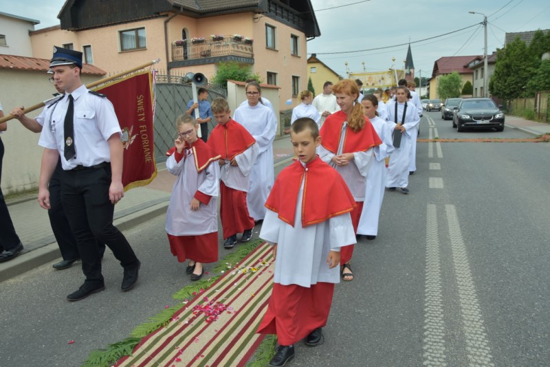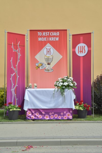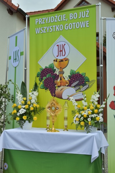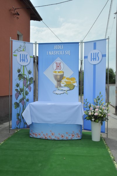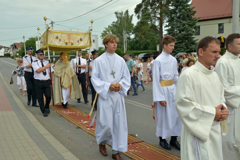 Uroczystość Bożego Ciała: w tym roku procesja odbyła się do czterech nowych, pięknie przygotowanych ołtarzy ustawionych wzdłuż ul. Powstańców Śl. Procesję przy pięknej pogodzie razem z księdzem proboszczem prowadził diakon Rudolf Wilczek z Pietrowic Wielkich.