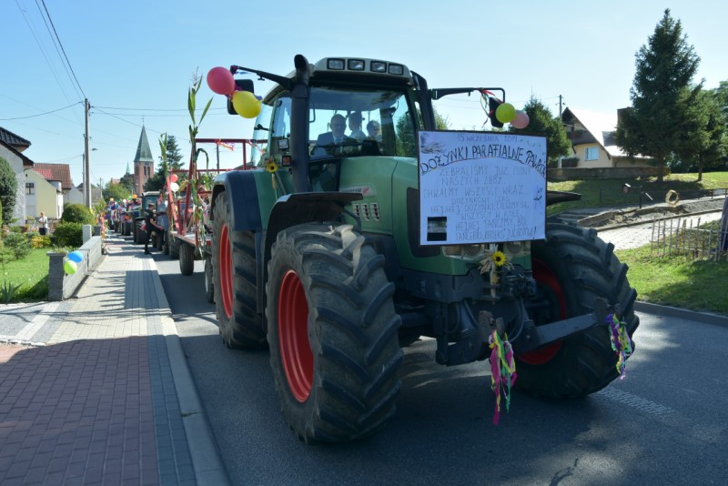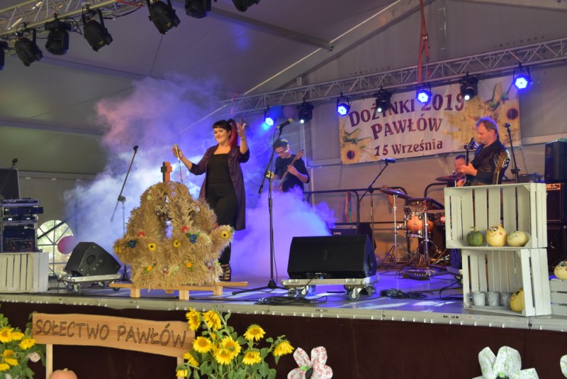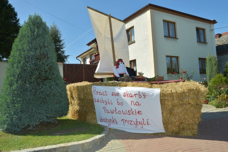 Uroczystość Dziękczynienia za tegoroczne żniwa świętowaliśmy przy pięknej pogodzie. Msza św. o godz. 12.00, a po niej wyruszył korowód dożynkowy z placu przy probostwie. Jak zwykle był bardzo kolorowy. Wieś była bardzo pięknie udekorowana. Po Mszy św. odbył się festyn dożynkowy, na którym wystąpiły zespoły: BIESIADA Z HUMOREM i WEHIKUŁ CZASU – HITY LAT 80. I 90. Charytatywna Loteria Dożynkowa z cennymi nagrodami, zuzka, bufet, napoje i na koniec zabawa taneczna przy akompaniamencie zespołu ORION do godz. 1.00 – to wszystko zgromadziło setki gości. Starostami dożynek byli małżonkowie Jolanta i Piotr Opolony. Dożynki zostały przygotowane przez Sołtysa i Radę Sołecką przy współpracy z Parafią oraz LKS Pawłów, OSP Pawłów i jak zawsze przy ogromnym zaangażowaniu wiernych, zwłaszcza jeżeli chodzi o przyniesione nagrody na loterię dożynkową, z której dochód w całości przeznaczono na dofinansowanie zakupu opału do kościoła.