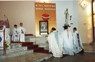 Koncelebrowanej Eucharystii przewodniczył ks. Zygmunt Hupka, proboszcz parafii w Pawłowie. W homilii ks. Hupka podkreślił, że główną koroną jest nasze codzienne dążenie do świętości. On też nałożył koronę na obraz Matki Bożej Trzykroć Przedziwnej. Następnego dnia w Pawłowie rozpoczęła się peregrynacja ukoronowanego obrazu w tamtejszych rodzinach. Po zakończeniu nawiedzenia obraz zostanie umieszczony w bocznym ołtarzu kościoła parafialnego. Tym samym grupa parafian z Pawłowa włączyła się w nurt koronacyjny występujący w całej Rodzinie Szensztackiej, wyrażając w modlitwie pragnienie odważnego wejścia w trzecie tysiąclecie wraz z Maryją, Królową Sanktuariów Pielgrzymujących.