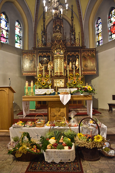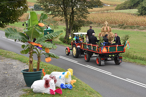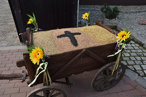 Uroczystość Dziękczynienia za tegoroczne żniwa świętowaliśmy w tym roku przy pięknej pogodzie. Lato zresztą było niezwykle upalne i wszyscy wyczekiwali deszczu. Nawet, gdyby w Dożynki lało, nikt by się chyba nie zżymał na niepogodę. Msza św. o godz. 12.00 poprzedzona była korowodem dożynkowym, który wyruszył o godz. 10.30 z placu przy probostwie, był wyjątkowo kolorowy. Wieś była bardzo pięknie udekorowana. Po Mszy św. odbył się festyn dożynkowy, na którym wystąpiły zespoły: KOLOROWE PODWÓRKO DALMATYŃCZYKÓW MIMI I PONGO, MAGIC OF BONEY M, BIESIADNIE Z DANUTĄ I KRYSTIANEM. Konkursy dożynkowe z cennymi nagrodami, zuzka, smaczne kiełbaski, steki, bigos, zimne napoje, frytki i na koniec zabawa taneczna przy akompaniamencie zespołu HEAVEN do godz. 2.00 – to wszystko zgromadziło setki gości.